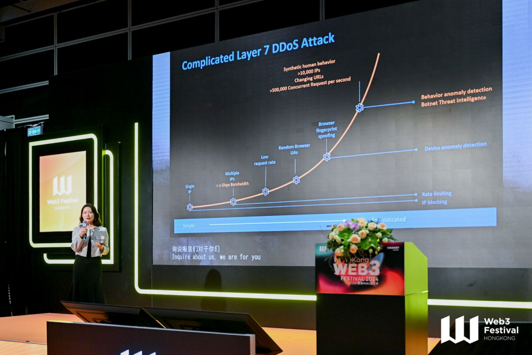 最后,Akamai 的首席安全顾问 Zoe 从 DDOS 攻击、API 漏洞攻击等方面出发,提出了一系列 Web3 面临的业务挑战,同时介绍了 Akamai 的高级安全解决方案和服务,表示将通过此尖端安全防御系统,为 Web3 创新赋能。