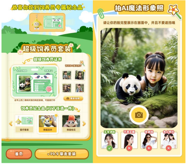动物园并不罕见,但是你有没有见过能够利用 AI 技术与动物亲密 “互动”的动物园?这个“五一”假期,杭州动物园和网易区块链合作,联袂推出了独具园区特色的数智文创一体机。这次全新的尝试也是人工智能技术首次在国内动物园实景的落地应用。借助数字内容搭建能力、寓教于乐的互动体验、IP 特色 + 个性化定制,网易区块链与杭州动物园携手构造了“数字技术加持、体验价值丰富、个性化释放”的 AI+ 动物园文创联动模式,为景区 IP 文创注入创新的活水。在前期用户调研中,发现杭州动物园受众多为家庭式游客、学生团体以及动物爱好者,且生物多样性与环境保护教育是其的主旋律。因此,在互动体验路径上,尽可能地贴合了小动物们的天然习性。例如,依据大熊猫喜欢竹笋的天性,设计了利用神奇手柄帮大熊猫“挖竹笋”的任务;针对马来熊独特的吃食技巧——利用长舌舔食白蚁,针对性制定了帮它完成“挖蚁穴”的任务。在互动体验的过程中,一体机也会自动捕捉参与者的人脸,并由 AI 生成与小动物独一无二的“亲密”合照,用以珍藏留念。在专属纪念品上也藏着一点“小心机”:展示了有关小动物的特点、生态环境和保护问题的知识。这样,参观者不仅能够体验数字化和个体化互动的乐趣,也能够学习到关于动物和生态保护的相关知识。在文旅融合的背景下,文创无疑能争取更大的生存空间,凸显景区特色,激活景区发展新动能。作为文旅 IP 二次消费的主力军,文创产品也是提升文旅 IP 整体品牌、价值和口碑的最佳途径之一。以数字内容搭建能力为基础,数智文创一体机已有多次成功尝试。例如,在灵隐景区、法华寺、北高峰景区等投放的设备,利用 AIGC 技术,智能生成个人专属藏头诗以及定制化祈福文,助力开启寺庙智能祈福新时代。再如联动临平博物馆,将良渚文化、古文物符号元素和数字技术相融合,推出“小小文物探险家”定制一体机,这款机器在去年首次亮相杭州数贸会时,就赚足了“眼球”。数智文创一体机展示了新一代信息技术与文旅产业协同发展的创新成果和应用价值。借助一体化设备,促进数字技术与文化 IP 的强强联合,激发数字文创“破圈”效应,打造新文旅、新场景、新消费,为文旅 IP 打造亮眼的数字名片。