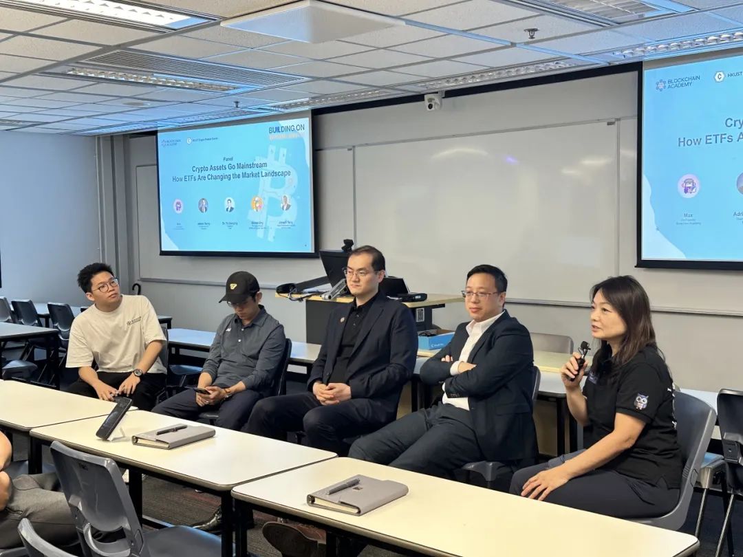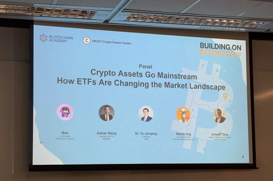 第二场圆桌会议中,Metalpha CEO Adrian Wang、Uweb 校长于佳宁博士、HashKey Group 机构产品负责人 Joseph Tang 以及 MUNG Blockchain Law 的负责人 Monin Ung 对香港 ETF 通过以后的趋势进行了探讨。