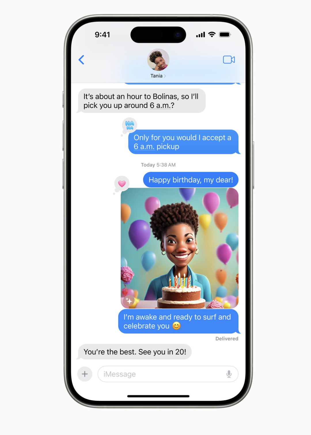 就像表情符号一样,Genmoji 可以内嵌添加到消息中,也可以作为贴纸或 Tapback 中的反应分享。
