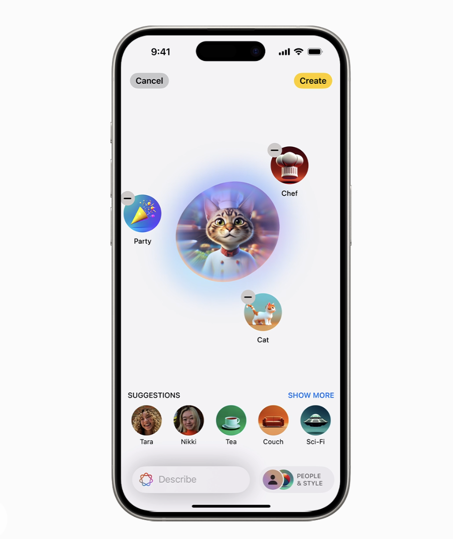 Image Playground 内置于包括信息在内的应用程序中,还提供专用应用程序,非常适合尝试不同的概念和风格。所有图像均在设备上创建,让用户可以自由地尝试任意数量的图像。