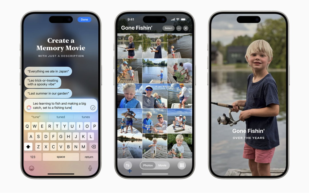 通过 Memories,用户只需输入描述即可创建自己想看的故事。Apple Intelligence 会利用语言和图像理解功能,根据描述挑选出最佳照片和视频,根据从照片中识别出的主题,用章节构建故事情节,并将它们编排成具有自己叙事弧线的电影。