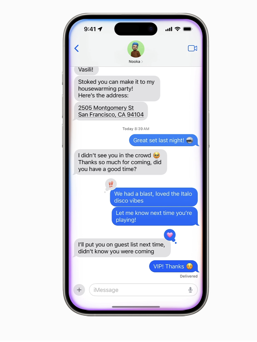 借助屏幕感知功能,Siri 将能够理解更多应用中的用户内容并采取行动。例如,如果朋友在信息中向用户发送了新地址,接收者可以说“将此地址添加到他的联系人卡片中”。