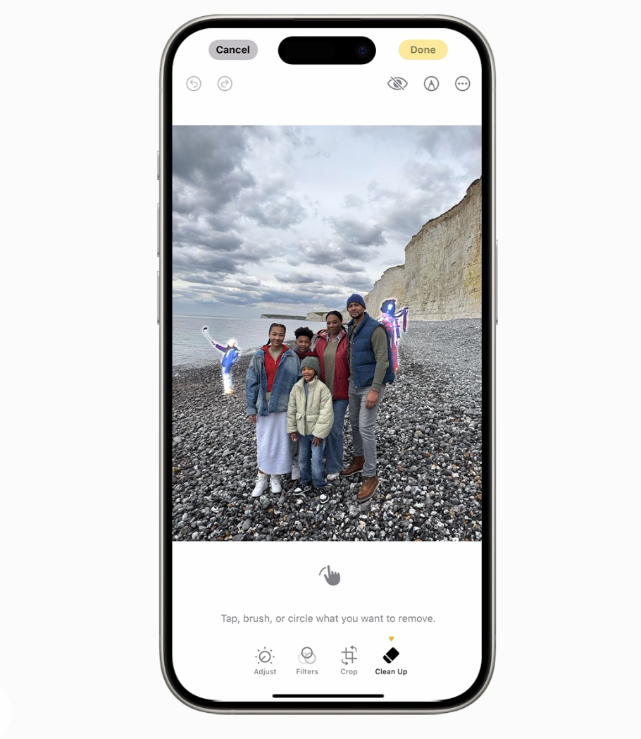 视频搜索功能也变得更加强大,可以查找剪辑中的特定时刻,以便用户可以直接转到相关片段。此外,新的清理工具可以识别并移除照片背景中的干扰物体,而不会意外改变主体。