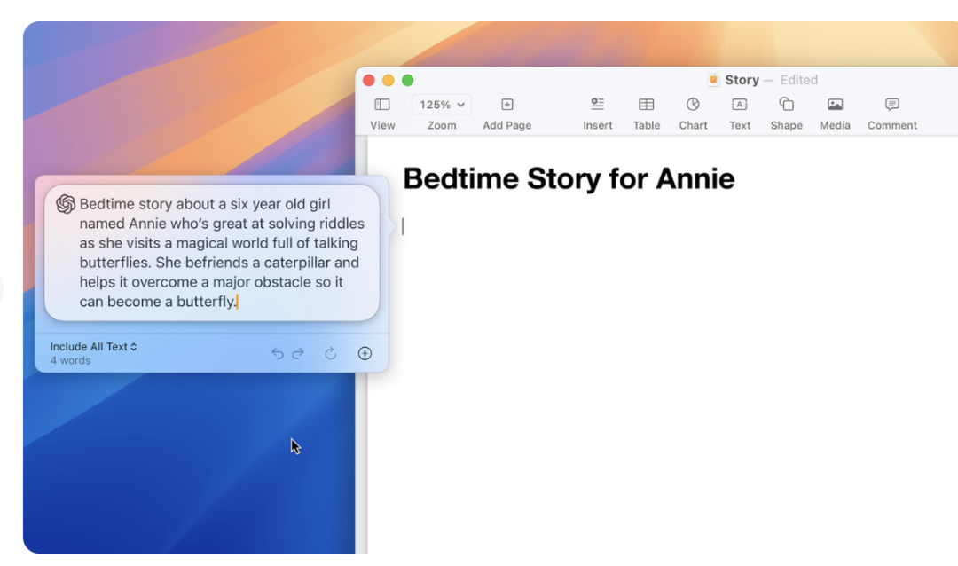 此外,ChatGPT 还将在 Apple 的系统级写作工具中提供,该工具可帮助用户生成他们所写内容。借助 Compose,用户还可以访问 ChatGPT 图像工具,以各种样式生成图像来补充他们所写的内容。