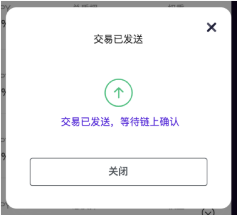 5.确认交易后,将提示交易已发送,您可前往页面查看我的投票情况,请注意每个钱包地址只能投一次票。