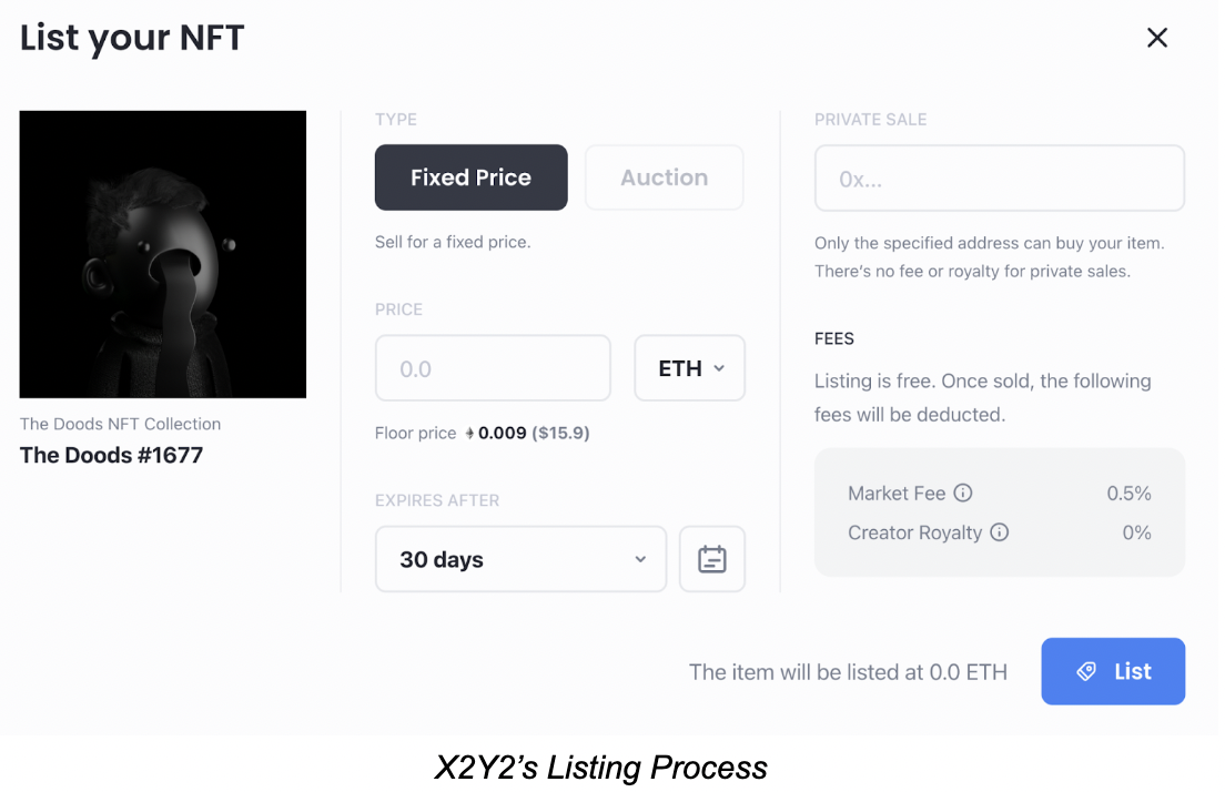 - Seamless NFT trading between friends (ability to include specific address that can purchase NFT listed)