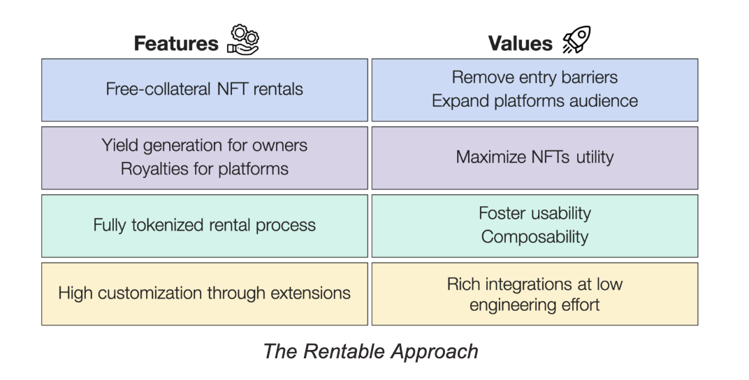 RentableRentable V2, the recently released updated version, allows any platform to offer free-collateral and completely tokenized rentals with ZERO integration work. Renting NFTs on Rentable eliminates entry barriers for users while allowing owners to earn a dividend without the fear of liquidation. Making it composable allows for the unprecedented creation of new and creative use-cases.