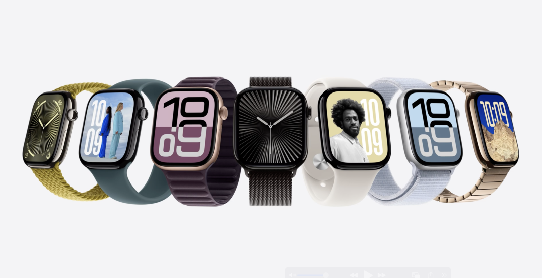 此外,Apple Watch Series 10 的防水性能达到 50 米深,增加了深度计和水温传感器,非常适合游泳、潜水等水上运动。全新的 WatchOS 11 还带来了智能堆叠小工具、全新的健康和健身功能,以及更多的个性化表盘设计。