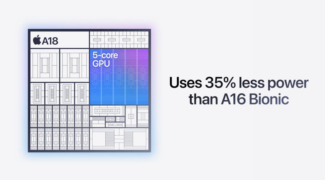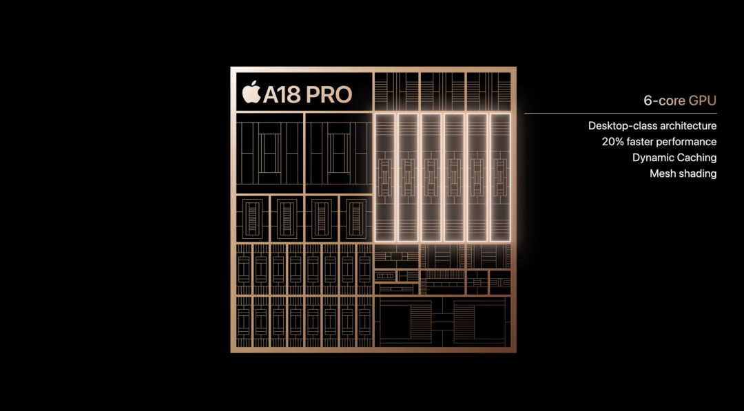 A18 芯片还采用了最新的桌面级 GPU 架构,全新 5 核心 GPU 在各类应用场景中发挥着重要作用,覆盖 Apple Intelligence 到摄像功能,再到图形密集型游戏。