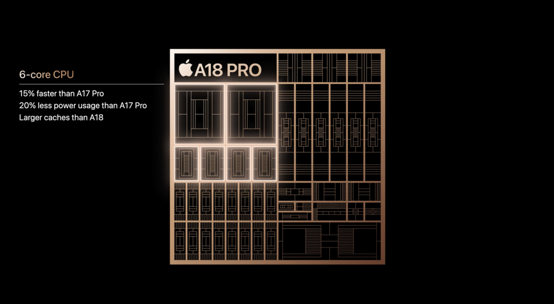 新的架构使得 iPhone 16 Pro 性能提升了 20%,非常适合运行 Apple Intelligence 和高性能游戏。
