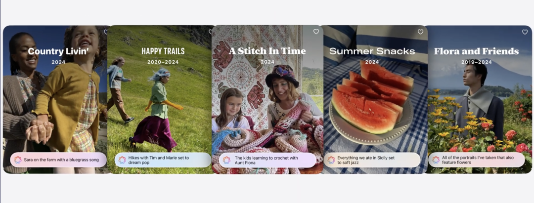 Apple Intelligence 将自动找到相关的照片和视频,并巧妙地将它们编排成一个故事。我们相信你一定会享受自己创建的电影合集,这些影片可以分享并珍藏多年。