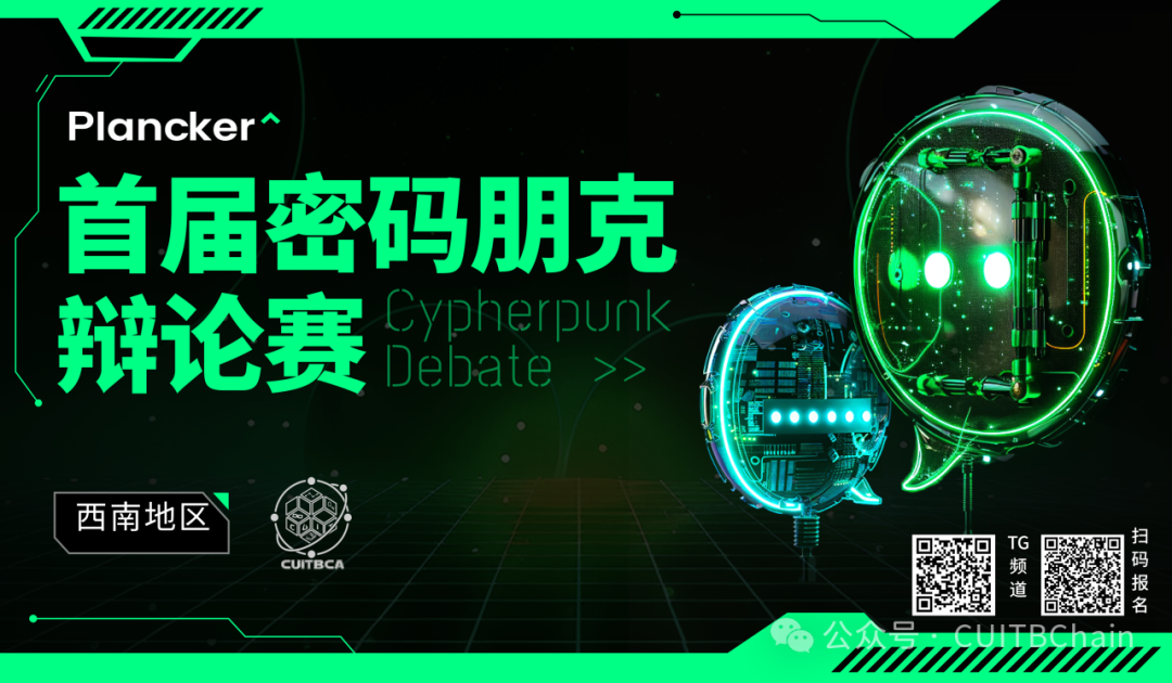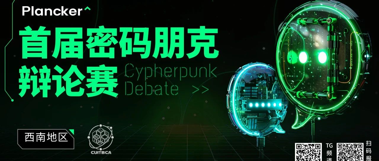 由 Plancker DAO 主办的首届密码朋克辩论赛西南赛区正式开放报名啦!本次参与方的包括成都信息工程大学学生区块链协会(CUITBCA)等各大西南高校学生。通过此次辩论赛,我们希望能够推动高校成员对密码朋克及其相关技术的深入讨论,发现并培养持续关注密码朋克的新生力量。