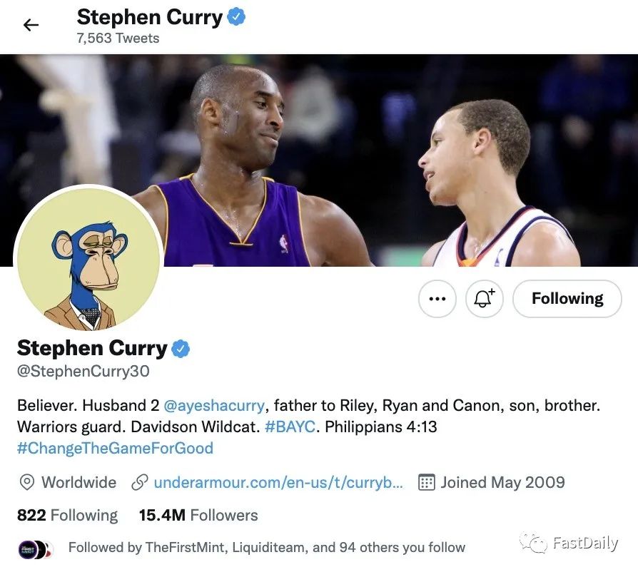 库里并不是第一个购买 Bored Ape 的著名运动员,但当他在 8 月底加入时,他肯定是最著名的一个。这位三届 NBA 总冠军、赛百味的代言人和电视节目「Holey Moley」的联合创作人当时以价值约 18 万美元的 ETH 获得了他的 Bored Ape NFT。在购买后不久,库里就出现在了该项目的官方 Discord 服务器上。