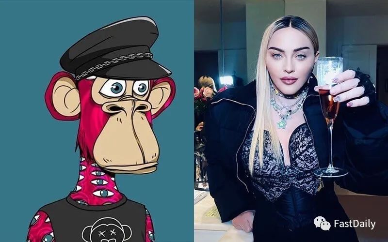 这位流行天后在 3 月 24 日分享了她的猿:一只粉红色,皮毛上布满了眼球的猿,并戴着 SM 帽子。值得注意的是,麦当娜的长期经纪人 Guy Oseary 也曾经营过她的 Maverick 唱片公司,现在代表着 Bored Ape 的 IP 向其他娱乐领域扩展。三月初,Moonpay 以 180 ETH (约 46.6 万美元) 的价格购买了 Bored Ape #4988,麦当娜在推特上发布的图片版本看起来修改了不同的背景,并进行了其他颜色的调整。
