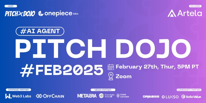 2025 年 2 月 27 日,由 OnePiece Labs 发起的 Pitch Dojo #FEB2025 以线上形式点燃全球 Web3 社群的热情。这场聚焦 AI 与区块链融合创新的赛事,不仅成为创业者的竞技场,更搭建起连接技术、资本与社区的价值网络。来自 30 余国的团队在虚拟舞台展开角逐,Artela Network与0G Labs两大技术平台的技术赋能,则为赛事注入了深层次的行业洞察。当 AI 的智能算法遇见 Web3 的去中心化精神,一场定义数字未来的对话在此展开。