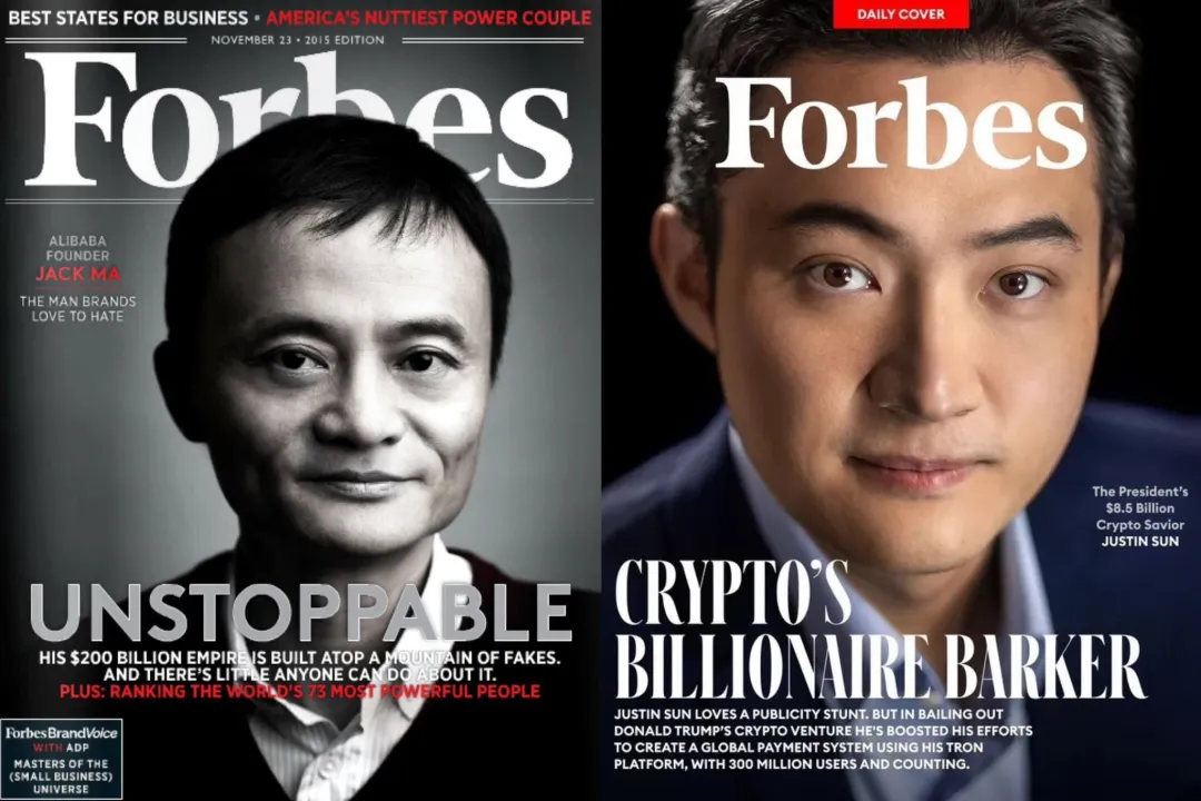 2025 年,当 34 岁的孙宇晨以"Crypto's Billionaire Builder"(加密领域的亿万富翁建造者)的身份登上《福布斯》封面,那个曾经站在商业巨人身后的年轻人,正悄然接过时代的接力棒。