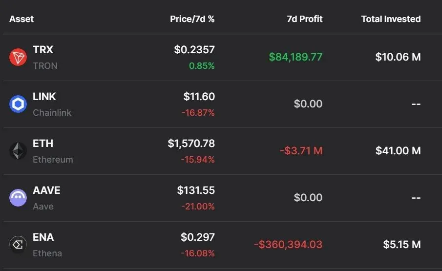 更耐人寻味的是,在市场剧烈波动的三月,WLFI 的投资组合中,唯有 TRX 保持着盈利状态,其它主流加密资产如以太坊都让特朗普家族亏损严重。
