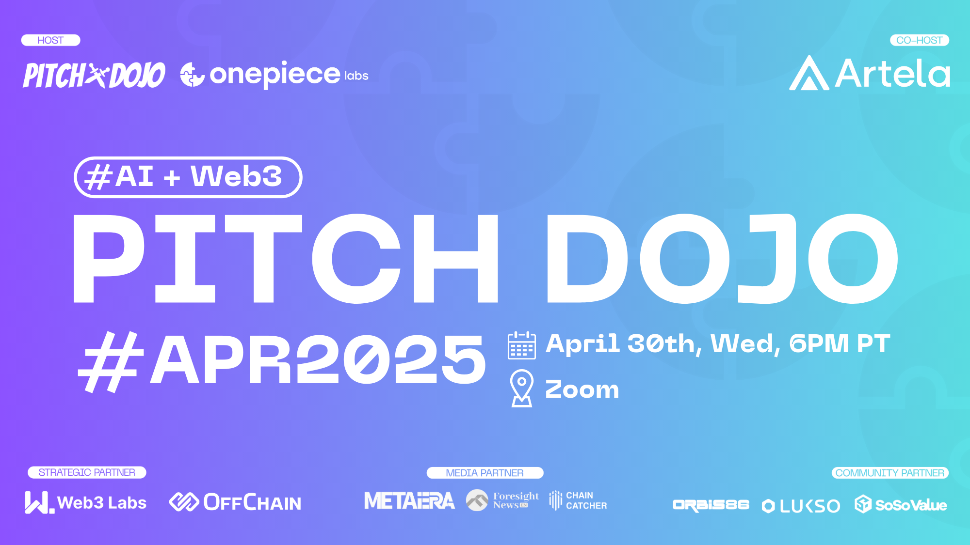 2025 年 4 月 30 日,Web3 信仰者再次齐聚一堂,参加 Pitch Dojo #APR2025。本次活动由 OnePiece Labs 主办, 联合Artela Network 与 0G Labs协办,吸引了众多建设者、投资人及梦想家,共同见证 AI 与 Web3 结合所带来的最新突破。正如以往,这不仅仅是一场路演竞赛,更是一次激发初创项目重塑数字未来的起点。
