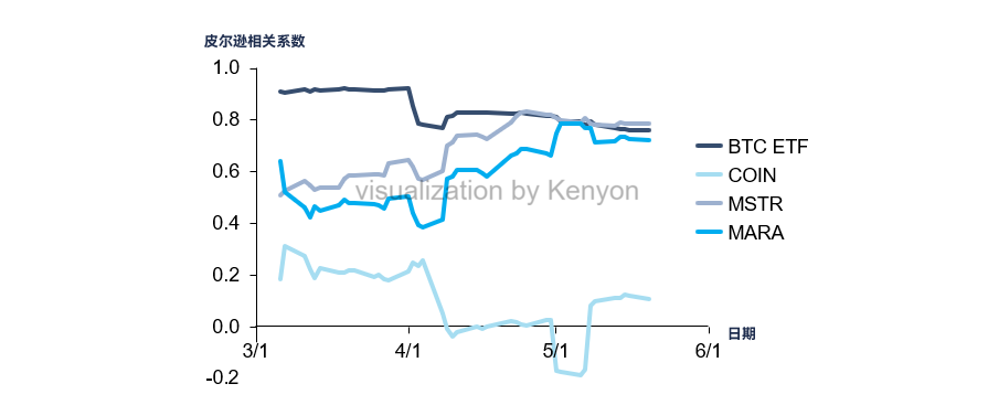 比特币 ETF 价值锚定为比特币本身,因此在价格表现上与现货保持高度一致,而加密概念股受到市场情绪、公司层面因素影响,呈现更强的阶段性特征。具体相关性差异见图 3。