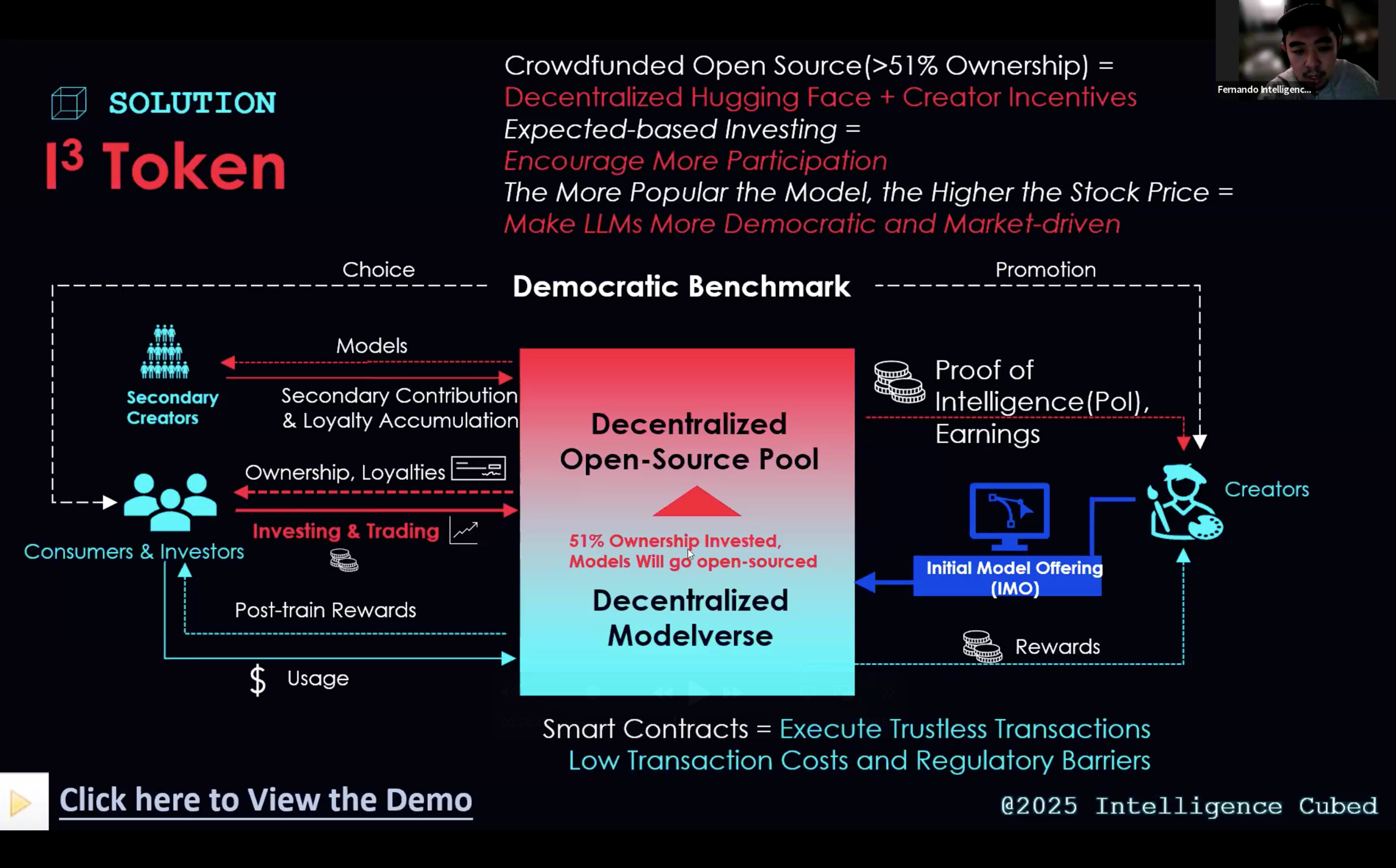 • Intelligence Cubed:集 Hugging Face 与 Uniswap 优势于一体,将每个 AI 模型转化为可交易并可赚取版税的资产,推动去中心化智能。