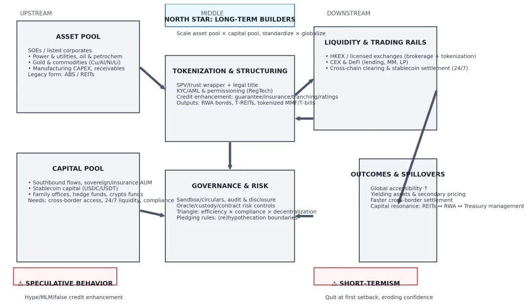 然而,香港需要进一步理清内地与香港的合规边界,以确保 RWA 市场能够在稳健的法规下健康发展,同时,吸引央国企等大规模资产入场,才能确保市场的长期发展动力。