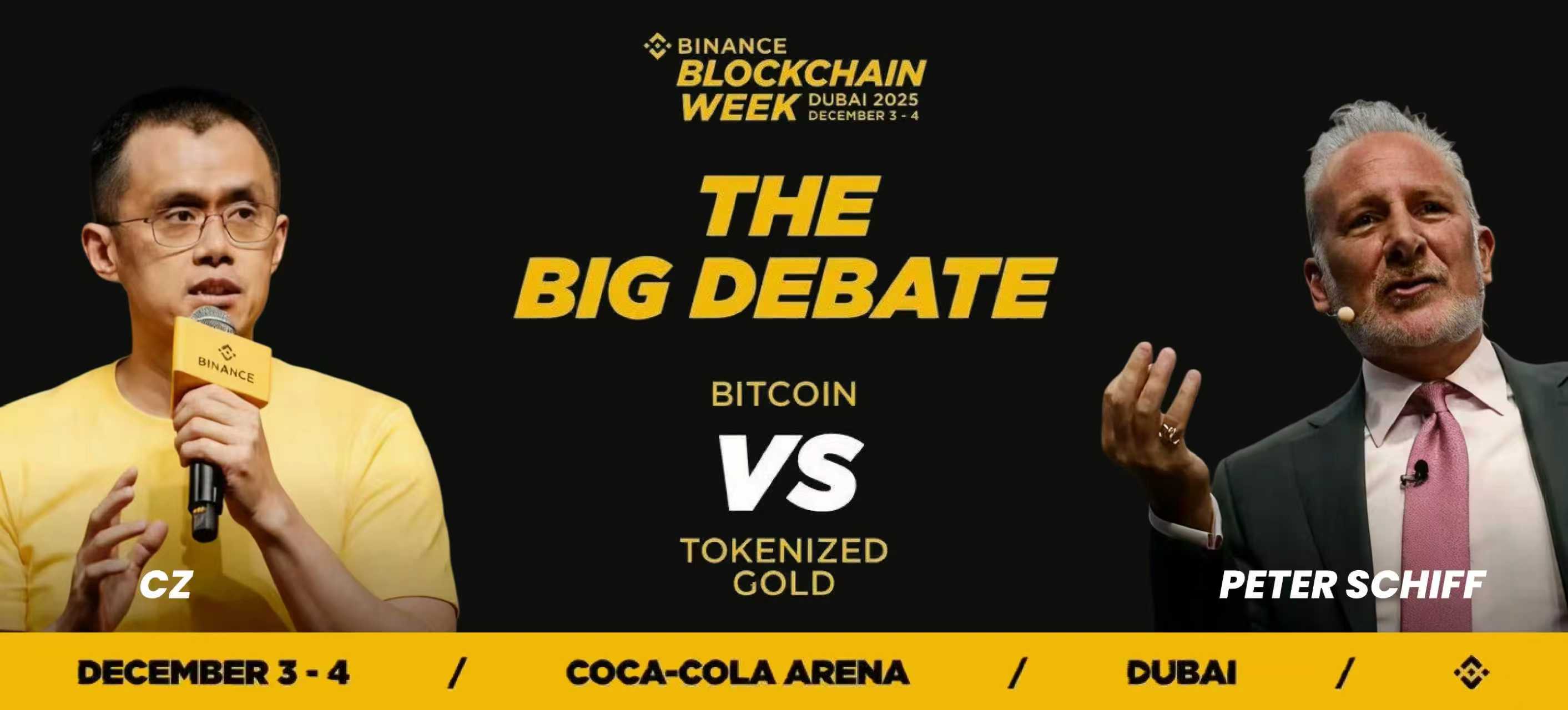 迪拜区块链周主舞台上,一场被称为“世纪对决”的辩论吸引了全球目光。币安创始人 CZ 与华尔街传奇人物、黄金坚定拥护者彼得·希夫正面交锋。