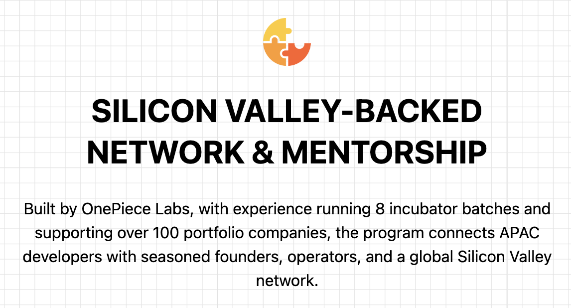 作为一家扎根硅谷的 Web3 加速器,OnePiece Labs 已成功运营 8 期孵化器项目,支持全球超过 100 家早期团队。我们深知,优秀的代码只是起点,真正的壁垒来自于生态连接力、产品思维与全球视野的融合。