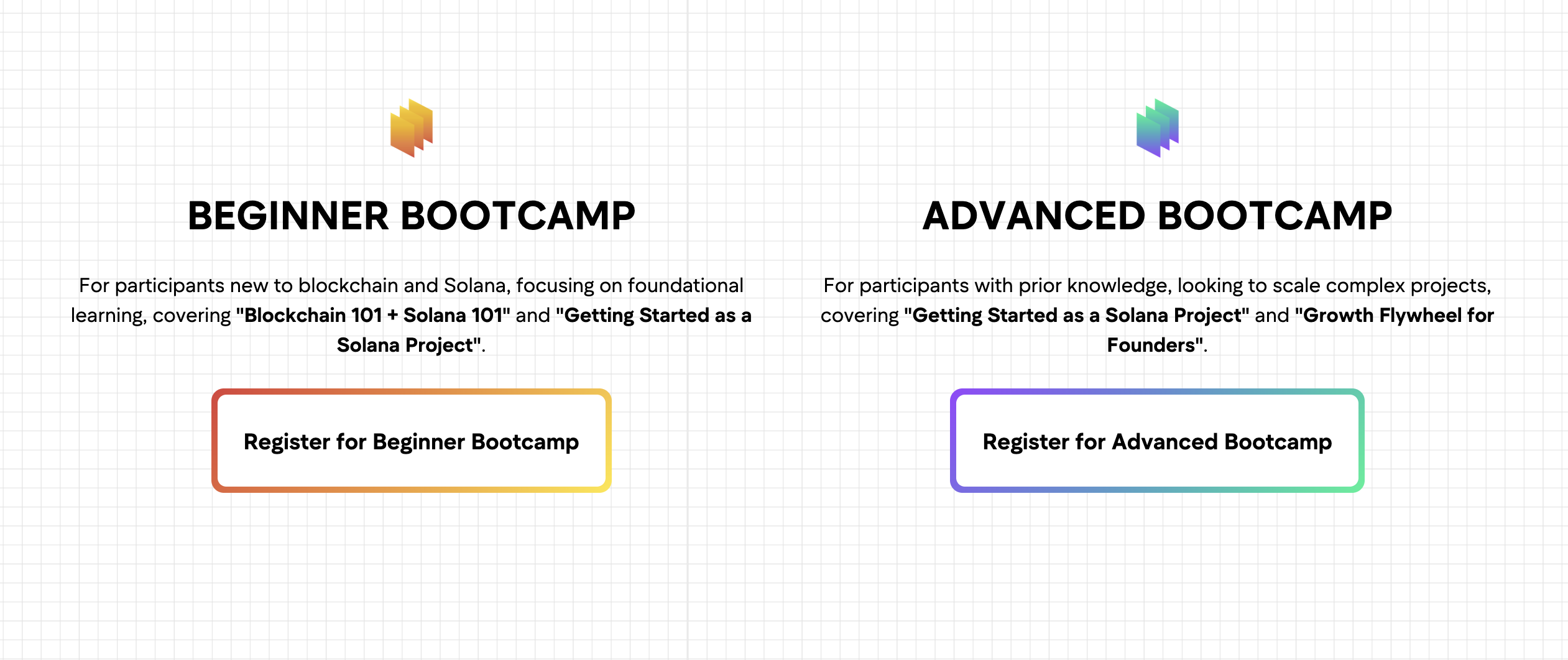 不同于传统技术培训,我们打造的 Solana 亚太训练营以“实战落地”为核心导向,构建了适配全阶段开发者的差异化体系,兼顾专业性与激励性,真正为开发者提供成长助力: