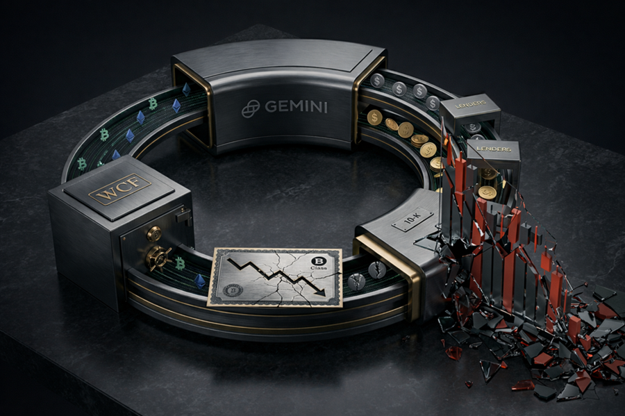 ·资金左手倒右手:创始人旗下 WCF 向 Gemini 借出加密资产,Gemini 再将其抵押给第三方套取美元贷款,形成内部循环借贷。