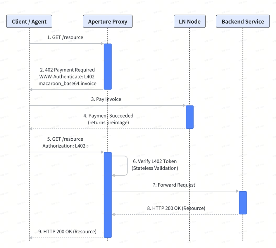 在协议层支付的探索中,除 x402 这类以稳定币为中心的方案外,另一个关键实践是由 Lightning Labs 推出的 L402(及其前身 LSAT)标准。该标准基于比特币闪电网络,同样旨在激活沉睡已久的 HTTP 402 Payment Required 状态码,为 API 服务提供一种原生的按次付费机制。与 x402 试图构建的链无关支付触发层不同,L402 从设计之初就与闪电网络生态深度绑定。其技术实现与安全假设均带有鲜明的“比特币原生”特征。