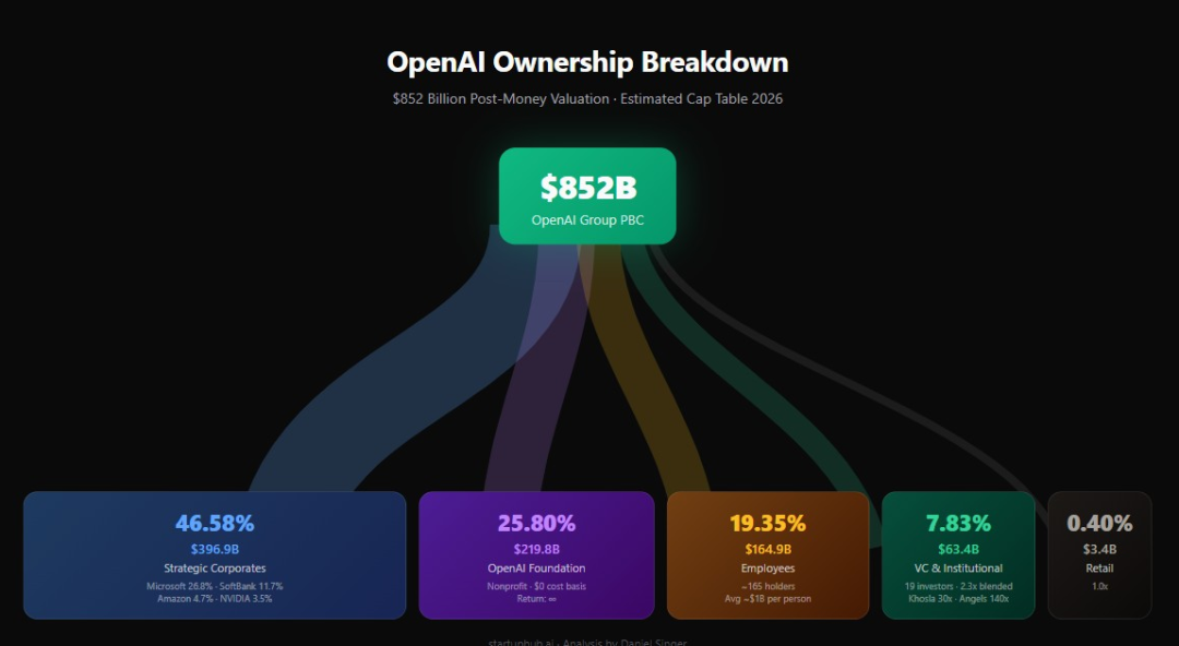 对面的 Dario Amodei,则是标准的创始人持股结构,身家在 2026 年初飙到 70 亿美元。