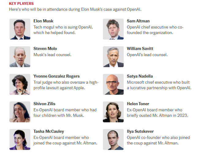 预计将出庭的关键证人,包括奥特曼、纳德拉、穆拉蒂、苏茨克维等